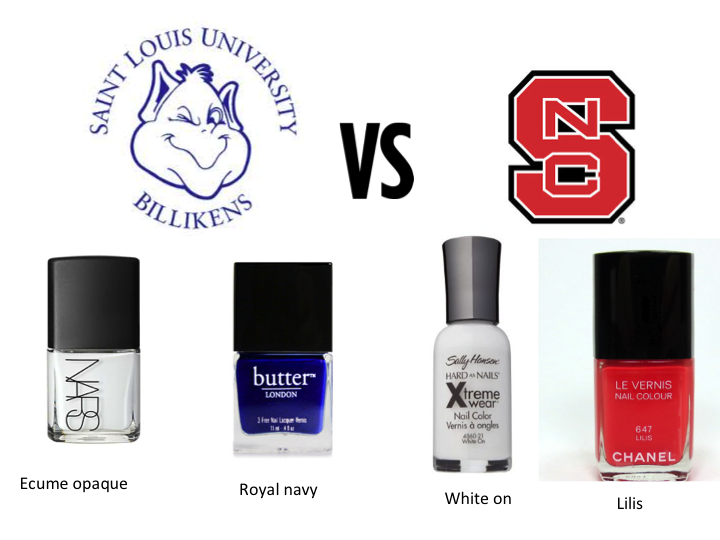 Up next is the Glamazon Diaries NCAA Men’s Basketball Tournament West Region (South Region Bracket here and West Region here). So show your school spirit and rock your school colors on your hands and feet.