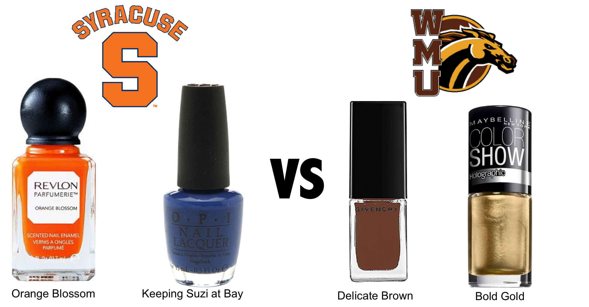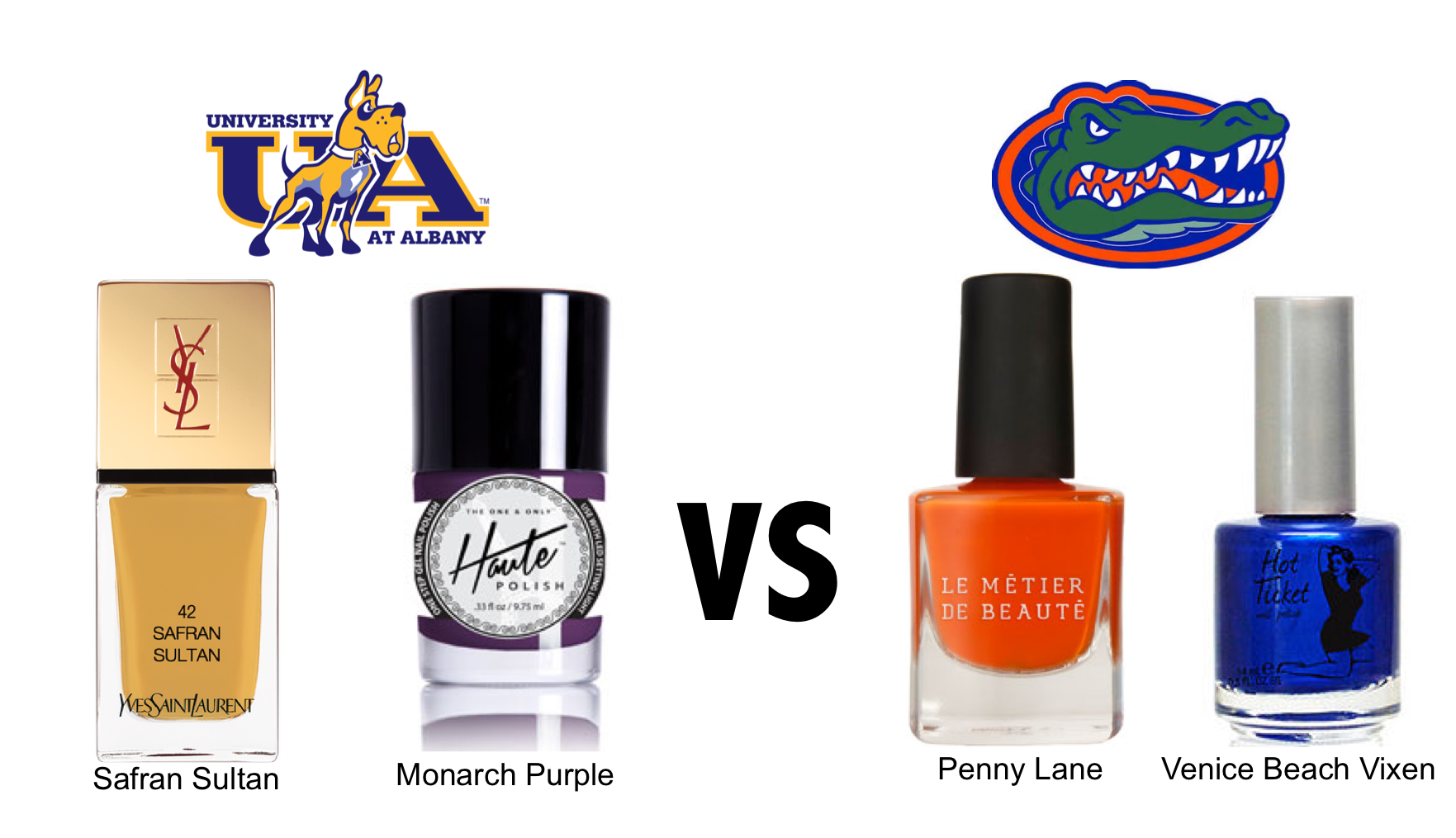 Even if your school was not lucky enough to make it to the NCAA basketball tournament, you can still join the festivities by participating in bracket contests. We’ve decided to make March Madness a little more fun. Instead of the traditional bracket, we’ve created brackets with each school’s colors in the form of nail polishes.