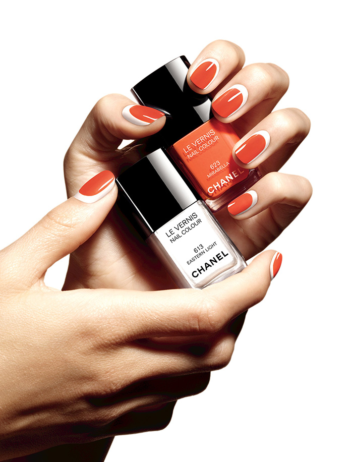 The lineup features white-meets-beige nail lacquer called Eastern Light, which is sure to sell out fast and be a hit this summer, and four other colors: Sweet Lilac, a lilac hue; Pink Tonic, a fuchsia hue; Tutti Frutti, a soft coral hue; and Mirabella, an orange hue.