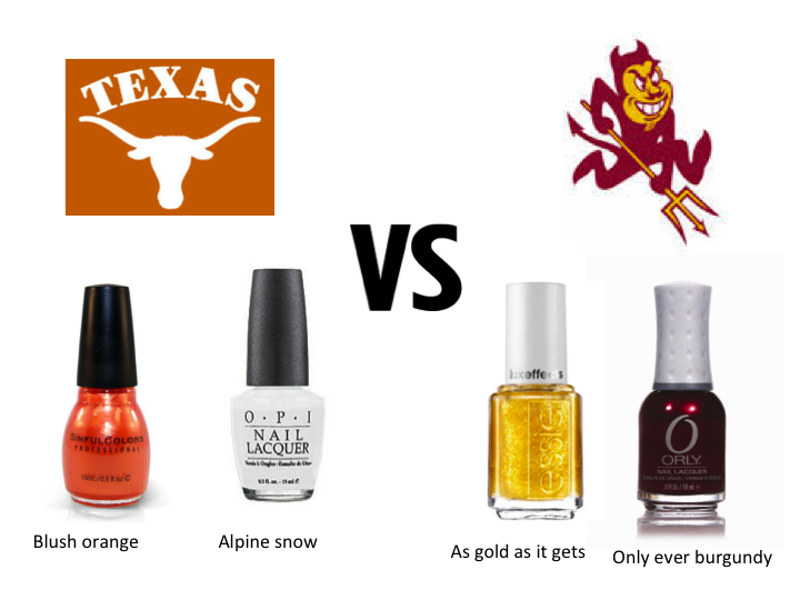 Even if your school was not lucky enough to make it to the NCAA basketball tournament, you can still join the festivities by participating in bracket contests. We’ve decided to make March Madness a little more fun. Instead of the traditional bracket, we’ve created brackets with each school’s colors in the form of nail polishes.
